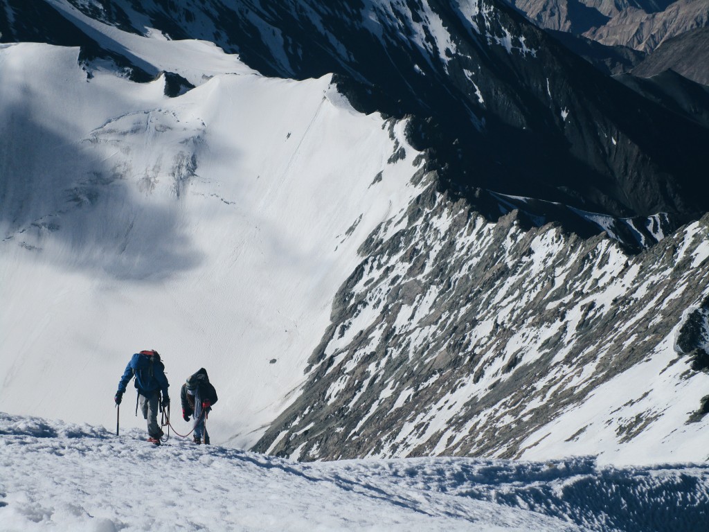 Ladakh Historical First Ascent by Pierre Vittoz 12 Aug 1951 [In the article below, Pierre Vittoz shared with us his August 1951 first historical climbing of the Stok Kangri in Ladakh. Pierre Vittoz, at 25, summitted this peak in one single day from his base camp at 5,000 m, as a solo climber, on 12 August 1951. At this time, he had been living in Ladakh for 10 months. This mountain is located in the Zanskar Range in Ladakh, approx 20 km southwest of Leh as the crow flies. Stok Kangri means "Stok snowy peak", from the neighbouring village of Stok (or "Stak" or "Stokes" for some authors). Today (2025), this massif stands among the most actively trekked mountains in Ladakh! Mainly from June to early October. That mountain has become so popular that it had to be shut off from tourists in 2021-2025 to enable Nature to recover and to protect the water sources of the Stok village... At the time, in 1951, only one other climbing attempt was known, by a Swiss party on 14-18 September 1925, as mentioned in PV's paper. Back in 1952, the Swiss journal Berge der Welt (Mountains of the World) editor Marcel Kunz was so kind as to check with these forebears the exact team composition and attempt date. In the same issue of Berge der Welt, PV's paper was preceded by a paper by Heinrich Harrer on his 1951 Panch Chuli (6'904 m) expedition with Frank Charlton-Thomas. The main peak of the Stok Kangri massif stands at 6,153 meter, 6,154 meter or 6,135 meter, depending on the sources. At this time, in August 1951, PV had been living for 10 months in Ladakh and was thus well-acclimated to 4,000-5,000m altitudes. I have discovered on 21 July 2025 at 10:30 this paper below by Pierre Vittoz proving that he had actually made the historical first ascent of this nowadays very popular Stok Kangri mountain in Ladakh. His article, written in German, with a misleading title, had gone practically unnoticed for 70 years! We should thus complete the Wikipedia pages for Stok Kangri with the Pierre Vittoz name as the first successful summitting on 12 August 1951. Pierre Vittoz made the first Summer ascent in 1951, but he first Winter ascent was achieved in 2002.] Leh, Ladakh [Quel titre opaque! Comment deviner qu'on y relate la 1ère ascension historique du Stok Kangri?] Par Pierre Vittoz Publié dans "Berge der Welt", die Zeitschrift der Schweizerischen Stiftung für Alpine Forschungen, Chefredaktor Marcel Kurz, Gunter Dyhrenfurth, Hans Roelli, Zurich, Band VII, 1952, Seite 286. Publié dans "Berge der Welt", la revue de la Fondation suisse pour la recherche alpine, éditée par: Marcel Kurz, Gunter Dyhrenfurth et Hans Roelli, Zurich, Vol VII, 1952, page 286. Source. Copie de sûreté: 21 juillet 2025. LEH-LADAK [Ascent of the Stok Kangri] Im Südsüdwesten von Leh, ungefähr 25 km entfernt, gibt es eine leicht vergletscherte Gruppe, die unter dem Namen Stok Kangri bekannt ist. Die einzige Karte, die ich besitze, ist eine französische Übersichtskarte im Massstab 1 : 1'000'000 aus dem Jahre 1902! Sie gibt für den Kulminationspunkt, der von hier aus gut sichtbar ist, 6’124 m an. Es ist eine schöne Spitze, die mich an das Bietschhorn vom Petersgrat aus erinnert, wenn sie auch nicht ganz so kühn geformt ist. Am 9. August 1951 reiste ich ab, um das ganze Gebiet näher kennenzulernen. Da ich keine passende Expeditionsausrüstung besass, musste ich auf eine ordnungsgemässe Belagerung verzichten und mich zu einer raschen Erkundung entschliessen. Ich hatte auch nur für wenige Tage Proviant mit. Nach der Überschreitung des Indus gelangte ich am ersten Tage über das Dorf Stok und durch die Schluchten südlich dieser Siedlung zu den Weiden, die sich längs dem Tal bis gegen 4’300 m hinziehen. Am nächsten Tag [10. Aug 1951] stieg ich westlich über Hänge und Moränen bis zum Rande des Gletschers auf, der vom Hauptgipfel und seinem südöstlichen Nachbarn herabfliesst. Ich errichtete mein Zelt bei etwa 5’000 m auf der rechten (östlichen) Moräne dieses kleinen harmlosen Gletschers. Am dritten Tage [11. Aug 1951], bei Nebel und Graupelschauern, begnügte ich mich damit, den Gletscher zwei Stunden weit hinaufzusteigen; dann hatte ich erkundet, was ich wissen wollte: die Südostseite des Hauptgipfels besteht aus einem gewaltigen Schneehang, der in einem einzigen Schwung von einem kleinen Bergschrund (ca. 5’300 m) bis zum Gipfel hinaufzieht. Auf der rechten Seite war der Firn von einem Felsgrat begrenzt, der, abgesehen von seiner unteren Partie, keine Schwierigkeiten bat. Tags darauf, am 12. August [1951], brach ich um 5:45 Uhr auf; gegen 7 Uhr befand ich mich am Fusse des Hanges und umging den Bergschrund auf den Felsen zur Rechten. Da der Schnee tief war, folgte ich auch weiterhin lieber diesen Felsen, die stark verwittert [érodé, usé par les intempéries] aber leicht waren. Erst weiter oben wechselte ich wieder in den härteren Schnee hinüber. Das war ein wahres Vergnügen: der Hang stieg in gleichmässiger Steilheit empor - ohne Rastpunkte, aber auch ohne Hindernisse. Um 10:45 Uhr [am 12.Aug.1951] berührte ich den Gipfelgrat [des Stok Kangris] mit der Hand. Es war mein erster Sechstausender. Die Ablesung meines Höhenmessers passte gut zur bereits genannten Kote von 6’124 m. Dann ging es rasch wieder hinunter zum Zelt, doch vergass ich unterwegs nicht, einige Peilungen mit der Bussole als Unterlage für eine kleine Kartenskizze des Massivs zu machen. In seinem Buch In Himalayan Tibet [Seeley, London 1926] berichtet Dr. Heber, der hier von 1914 bis 1925 mein Vorgänger war, dass er einmal einen Alpinisten mit seinen zwei Schweizer Führern begleitet hätte, als sie einen Angriff auf den höchsten Gipfel in einer Bergkette unternahmen, die auf der anderen Seite des Indus gegenüber Leh gelegen ist. Sie seien jedoch durch schlechtes Wetter in einer Höhe von etwa 5’500 m abgewiesen worden. Zweifellos handelt es sich hier um den Stok Kangri, aber wer waren diese Bergsteiger? In Ihrer Chronik «Himalaya 1939-1946» 